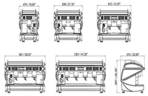 Espressomaschine 1 – 2SB – (2) – 3 – 4 Gruppen.